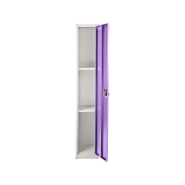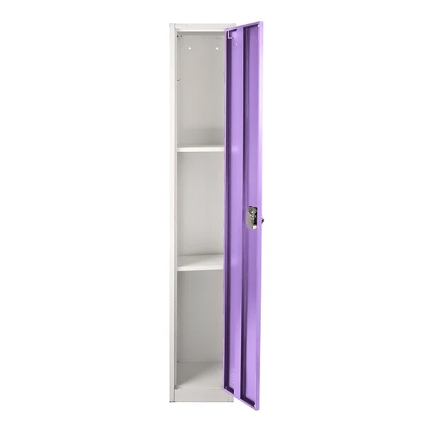 - Single-tier locker features two shelves and two hooks for coats, hats, backpacks, and sports gear