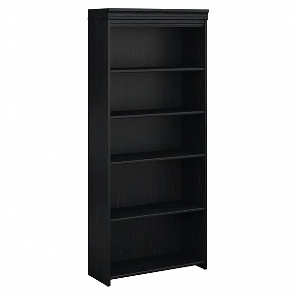 Bring a slice of modern farmhouse styling into your home office with the Bush Furniture Fairview 5 Shelf Bookcase. With three adjustable shelves, the Bookcase lets you display your favorite books and mementos of a variety of sizes while also providing two fixed shelves for stability. The elegant 5 Shelf Bookcase doesn’t take up much floor space but still offers plenty of storage to help you get organized. Order two or more to create a bookcase storage wall. Designed for the home or small business office, the Bookcase meets ANSI/SOHO safety and performance standards and comes with a Bush Furniture 6 Year Manufacturer’s Warranty. The Bookcase matches the rest of the Fairview Collection for a complete home or small office solution. See the full collection of coordinating items available. With casual cottage styling, Fairview offers a charming feel without sacrificing functionality.