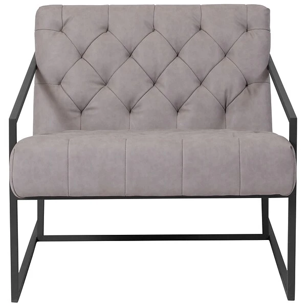 Transform your space and give visitors to your home or business something visually stimulating with this unique lounge chair. This versatile chair boasts an integrated frame that not only acts as an accent piece but also features slanted arms. The tufted back and seat done in white LeatherSoft upholstery give this piece a retro look that your clients and guests will notice. LeatherSoft is leather and polyurethane for added softness and durability. Set a trend with this cozy lounge chair that will be just as at stunning in your home as an accent chair as it is in your reception area.