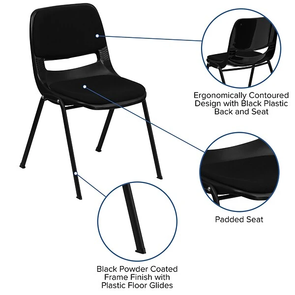 - Ergonomically Contoured Design with Black Plastic Back and Seat