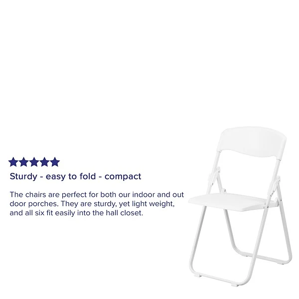 Plastic folding chairs are the choice of many event planners for their lightweight design, ease of cleaning, and versatility for events. This folding chair will make a practical choice in the home or for hosting outdoor events. The textured seat ensures safe and comfortable seating. After an event, you can stack them on top of each other or in a row.