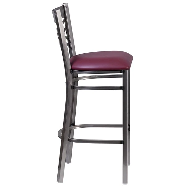 - Color: Burgundy Vinyl Seat/Clear Coated Metal Frame; Material: Foam, Plywood, Steel, Vinyl