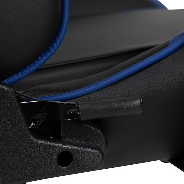 - Color: Blue; Material: Foam, Leather/Faux Leather, Metal, Plastic, Plywood, Polyurethane, PVC, Twill