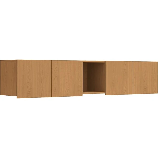 HON Voi Overhead Cabinet, 4 Doors with 12″W Cubbie, 72″W x 14-1/4″D x 13″H, Silver Mesh Finish