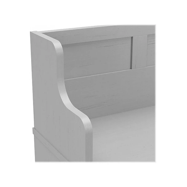 The kathy ireland Home by Bush Furniture Woodland entryway bench with shelves keeps footwear neat and organized for a clutter-free mudroom or foyer. The kathy ireland Home by Bush Furniture Woodland entryway bench with shelves combines transitional styling and a practical design to offer a perfect shoe storage solution. Have a seat on the shoe bench surface, and take a moment to relax as you get ready to head out the door or come home after a long day. The top of the mudroom bench supports up to 250 lbs., so you can sit down to put on and take off your shoes or set shopping bags down after a trip to the store. Open storage that includes six cubby spaces and vertical shelves on either side keeps footwear in order. This entryway organizer’s transitional design blends elements of contemporary and traditional styling to complement a wide range of home furnishings. This storage bench with back has been tested to meet Bush Furniture’s standards for safety, performance, and durability, and is backed by a 3-year warranty.