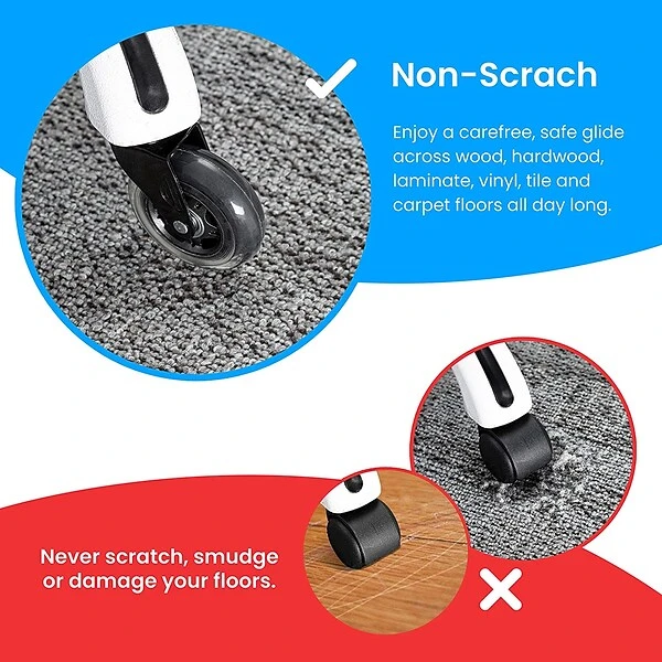 The chair casters are encased with a gentle polyurethane material to insure that the wheels do not scratch or leave marks on the floor. So that you don’t need chair mats any longer. They are universal fit and easy to install. The casters are designed to enable you to glide freely through you office without any squeaky noise of any kind.