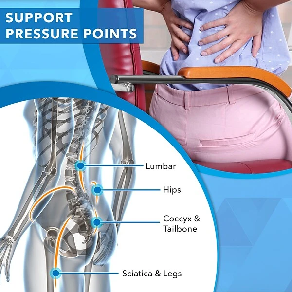 - Ergonomically designed, provides support and comfort while reducing pressure on the tailbone with the U-shaped cut-out and promotes healthy posture