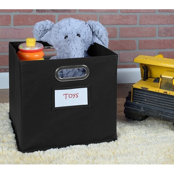 Find your Niche with versatile and modern Niche Fabric Storage Bins! Strong and durable, these bins each include a reinforced bottom panel that adds an extra layer of stability. With the bottom panel in place, they are sturdy enough to use on their own to hold files, scrapbook paper, children’s toys, towels, craft supplies and more. The bottom panel comes out and the entire bin folds flat for easy storage when not in use. Folded bins even fit perfectly inside an open one! Chrome handles are built into two sides of the bin, which makes carrying and moving it easy and worry-free. Inset handles are stronger than sewn-on cloth handles and won’t come unstitched or separate at the seams like cloth handles could. Measuring 12 x 12 x 12, Niche Fabric Bins are truly square and integrate seamlessly into Niche Cubo storage cubes. They can be used in any direction- there is no “right” side to face front becuase all sides measure the same! Personlize your bins by using the clear label holder on one side. Quickly and easily identify contents or assign bins to individual students. Ideal for every room in the house, make this Black Niche Folding Fabric Bin a part of your home or office today!