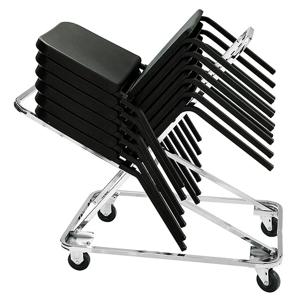 The DY-82 Chair Dolly helps prepare musicians for performances with simple transport and storage. This 17-gauge, chrome-plated, square steel dolly holds up to 18 of the NPS 8200 Series Melody Chairs. Handles on each side are 16 gauge, and four hard rubber 4″ casters (two that swivel) make mobility a snap. Each caster has a 83 lb. weight capacity for a total of 332 lbs.