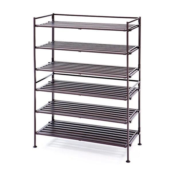 - Does not stack with 2-Tier Espresso Resin Slat Shoe Racks (model #: SHE15894B)