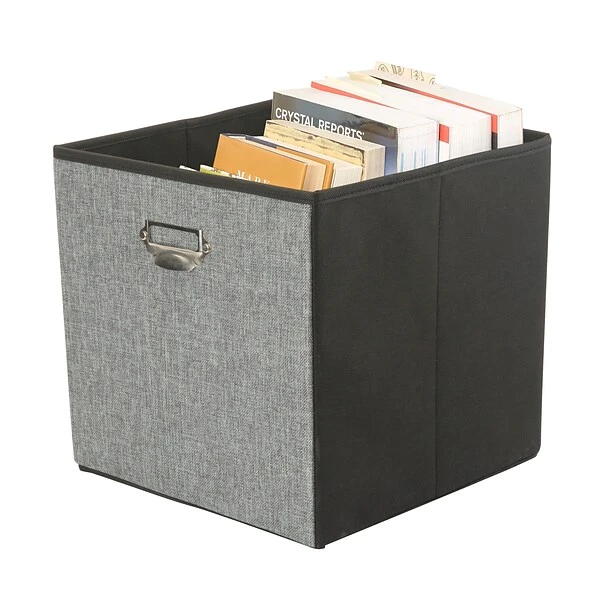 Simplify’s Collapsible Storage Cube is made of faux linen and paper board material that prevents dust and damage, while easily sorting and storing off season items and accessories. Sturdy metal handles makes it easy to carry the storage cube around the house. Holds a multitude of items to help de clutter your living areas. Open top allows for easy access of all of the belongings in the cube. Folds flat for storage when not in use.