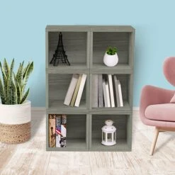 Way Basics 15″H Large Eco Modern Stackable Storage Cube, Gray Wood Grain (BS-SCUBE-GY)