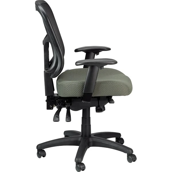 - Polyester fabric upholstery with mesh back for durability and extended comfort