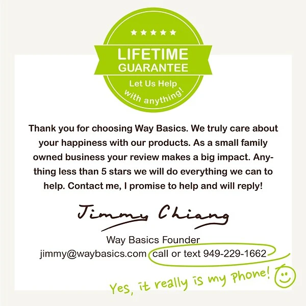 - Lifetime Guarantee; Happiness with product and service promised by CEO and Founder